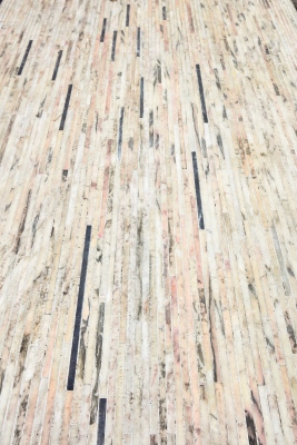Due to minor flaws, discolouring or imperfections, much of marble quarried is then rejected by contractors, architects and designers. Having identified this as a waste of otherwise perfect raw material and it being sent to landfill, London Design Festival were offered unwanted marble and asked to consider how it could be used creatively. Michael Anastassiades responded to the edge of the marble rather than the traditional flat surface, with the resulting design of the street making reference to traditional cobbles, as seen throughout Portugal.