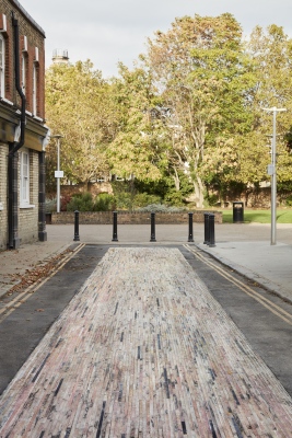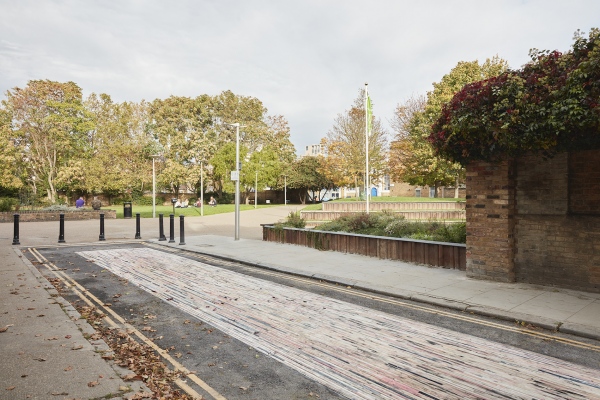 These cobbles were similarly rendered from unusable material but through the laborious task of forming each stone by hand. Transported to the historic community in Southwark, part of Bankside Design District, these elements create a marble carpet that contributes to the urban landscape of the Mint Street Park area while creating a new connection between the park and its surrounding neighbourhood.