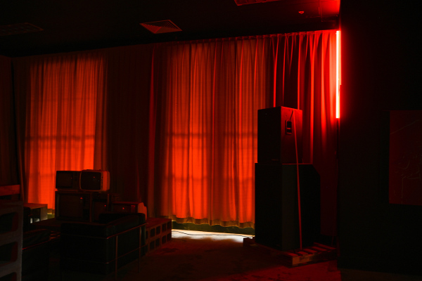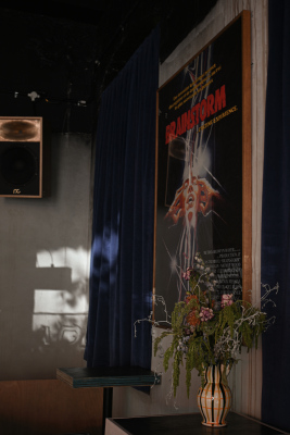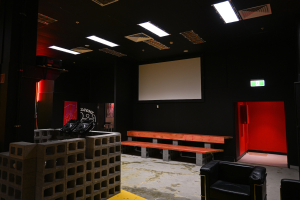 At the front is an intimate standing bar serving wine from Australia’s East Coast, disco-inspired cocktails and cold beer. Up a ramp behind a door, the SHADES backroom is a warehouse-scale space showcasing a roster of resident DJs, special guests and experimental cinema screenings by the Golden Age Cinema programming team. Restored vintage Klipsch speaker stacks, salvaged from Sydney’s iconic Sublime nightclub, provide the acoustic backdrop with projectors and screens providing a platform for digital art and moving image installations and collaborations.